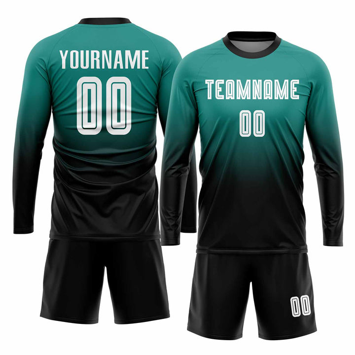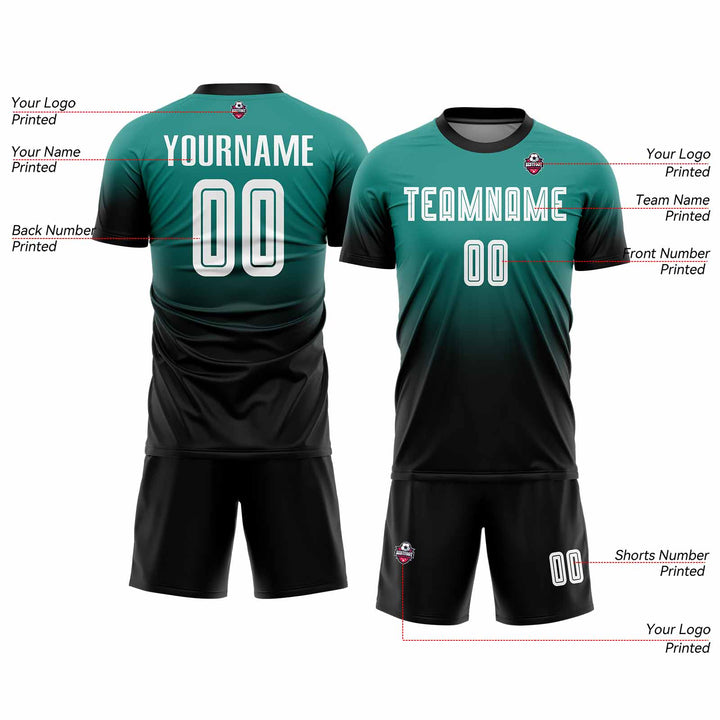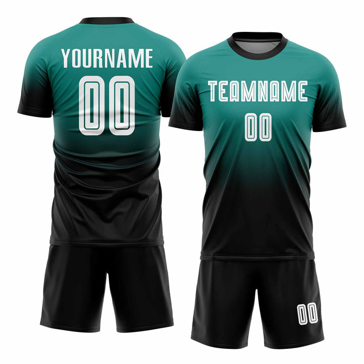 Custom Aqua White-Black Fade Fashion Classic Uniform Training Sets Soccer Jersey For Adults/Kids