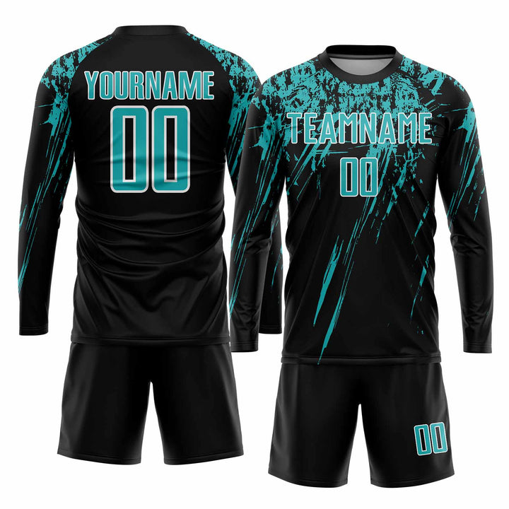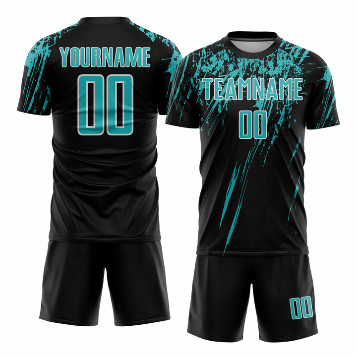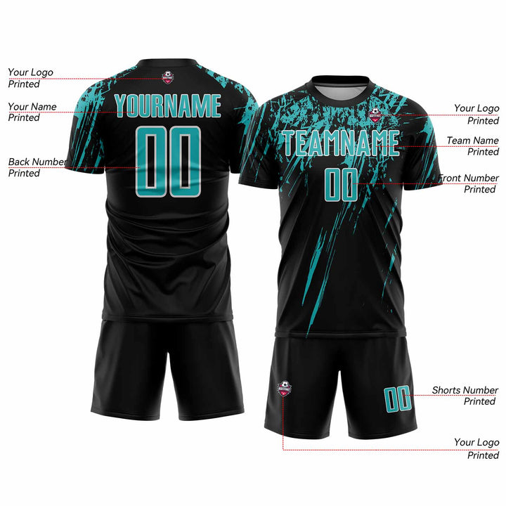 Custom Black Aqua-White Classic Uniform Training Sets Soccer Jersey For Adults/Kids