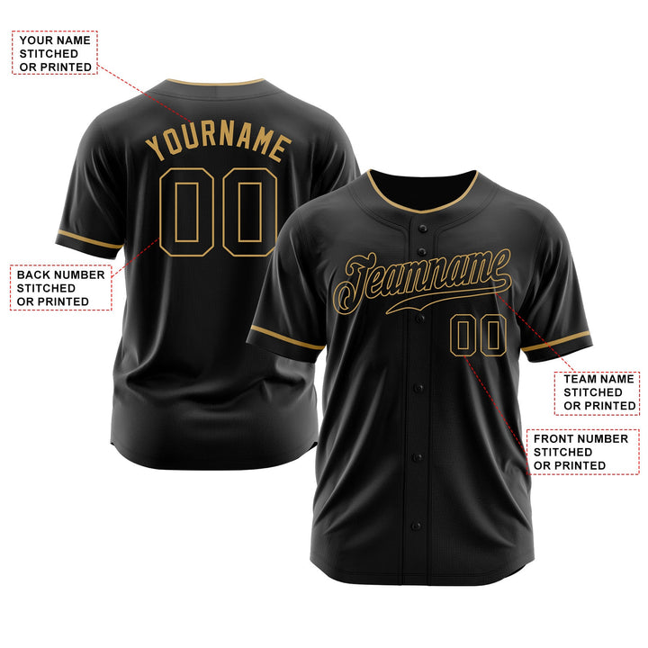 Custom Black Black-Old Gold Classic Style Authentic Sports Baseball Jersey