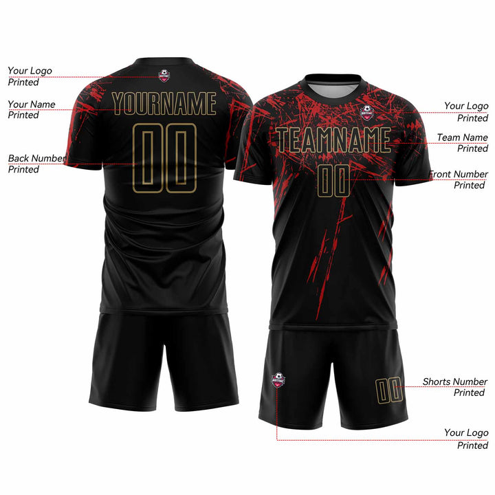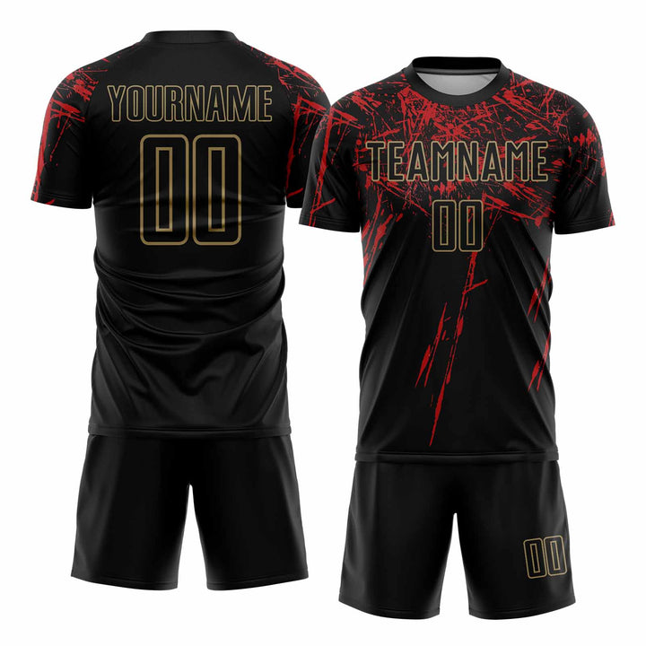 Custom Black Black Old Gold-Red Classic Uniform Training Sets Soccer Jersey For Adults/Kids