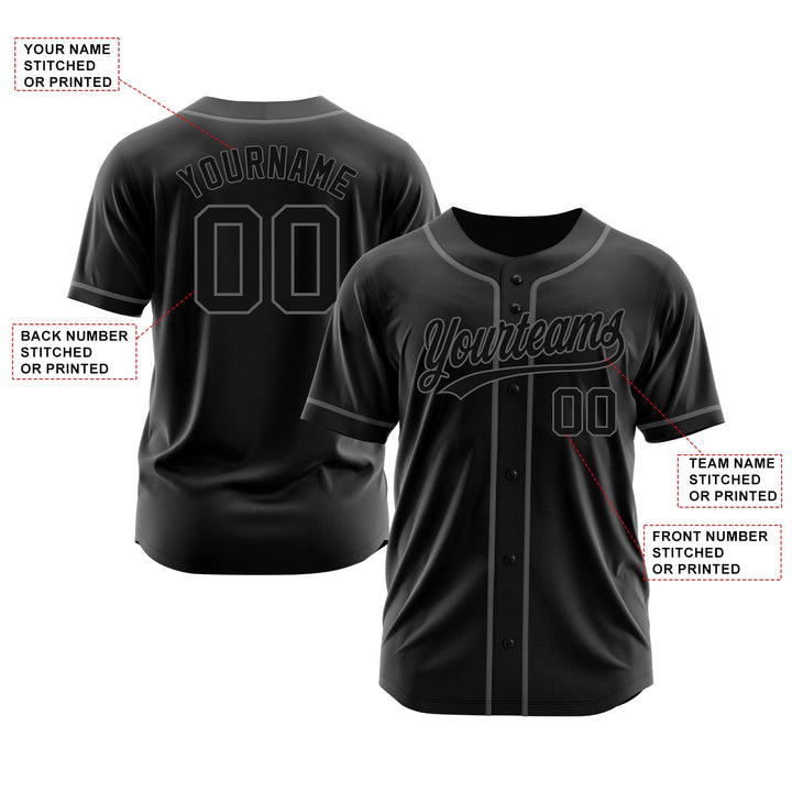 Custom Black Black-Steel Gray Classic Style Authentic Sports Baseball Jersey