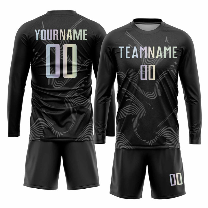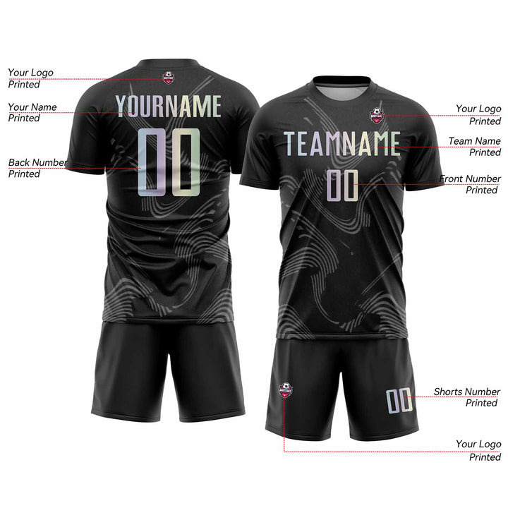 Custom Black Gradient-Gray Curve Lines Classic Uniform Training Sets Soccer Jersey For Adults/Kids