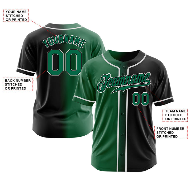 Custom Black Kelly Green-White Gradient Fashion Classic Style Authentic Sports Baseball Jersey