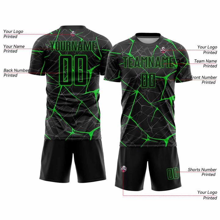 Custom Black Neon Green Classic Uniform Training Sets Soccer Jersey For Adults/Kids