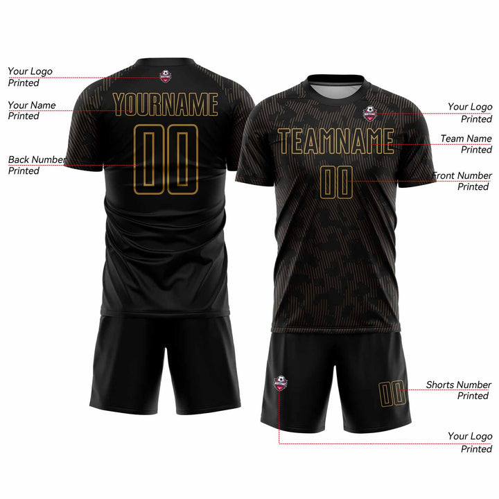 Custom Black Old Gold Classic Uniform Training Sets Soccer Jersey For Adults/Kids