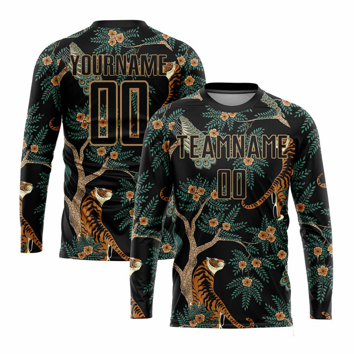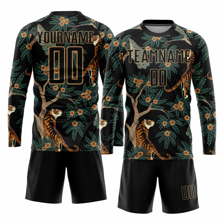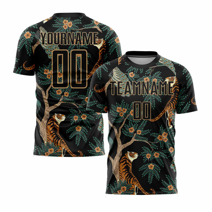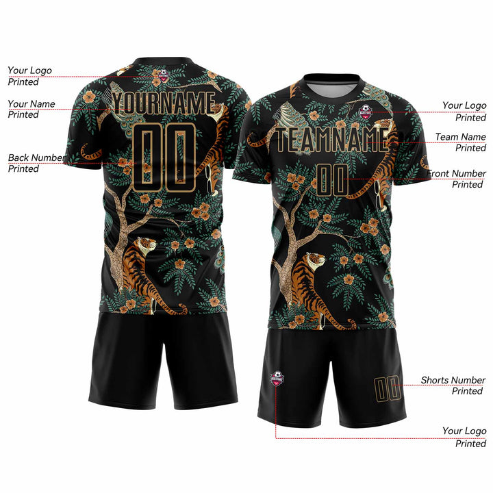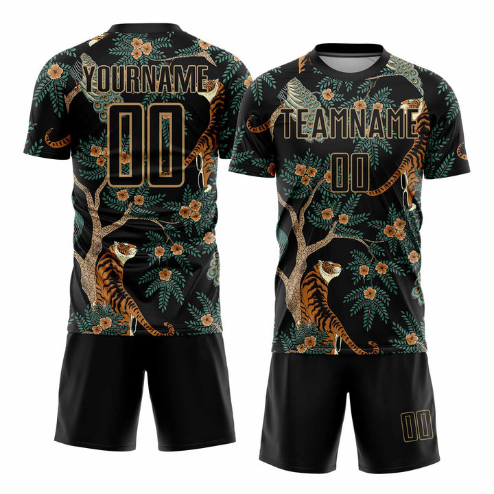 Custom Black Old Gold Tiger And Peacock Classic Uniform Training Sets Soccer Jersey For Adults/Kids