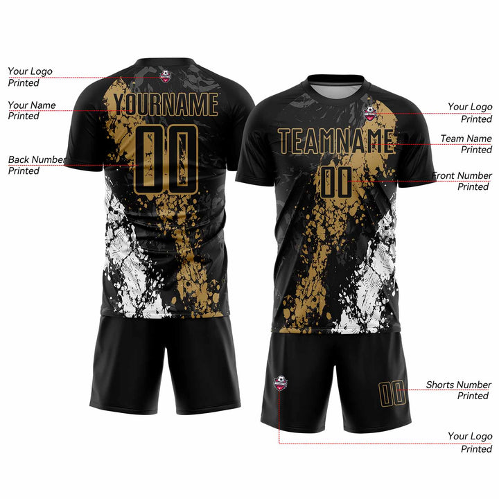 Custom Black Old Gold-White Classic Uniform Training Sets Soccer Jersey For Adults/Kids