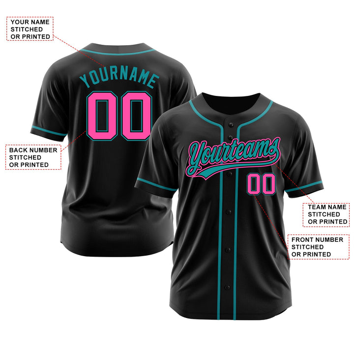 Custom Black Pink-Teal Classic Style Authentic Sports Baseball Jersey