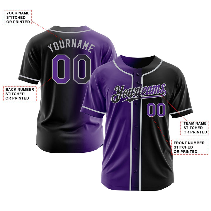 Custom Black Purple-Gray Gradient Fashion Classic Style Authentic Sports Baseball Jersey