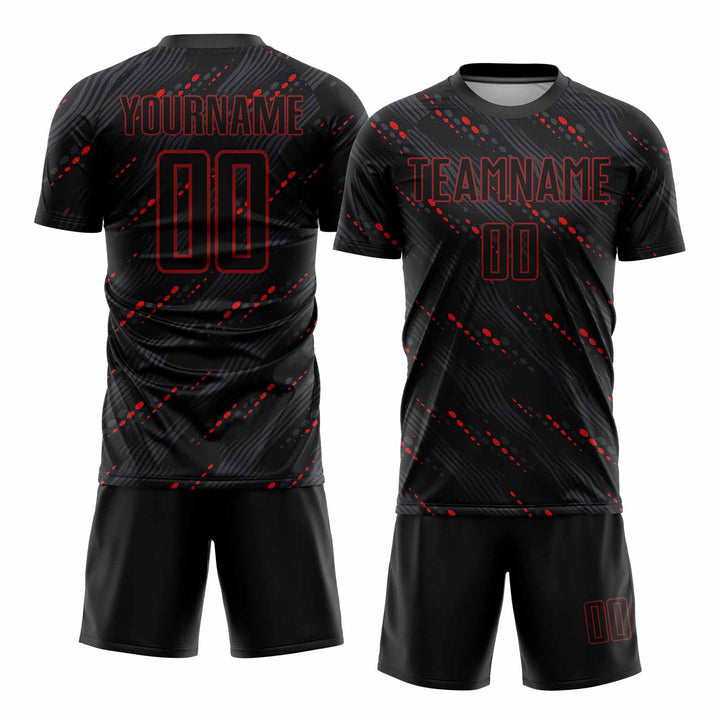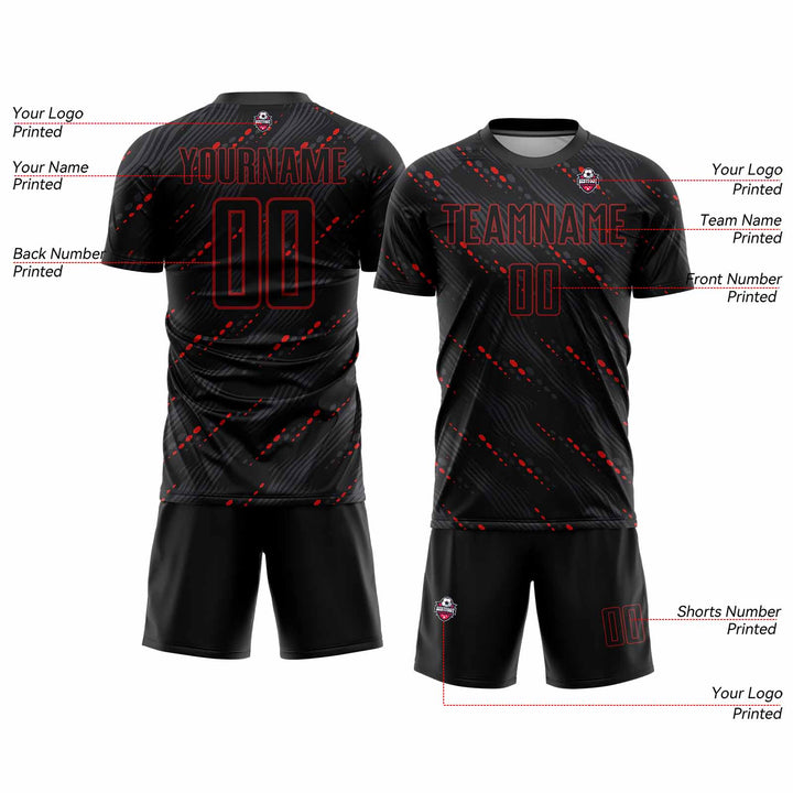 Custom Black Red Classic Uniform Training Sets Soccer Jersey For Adults/Kids