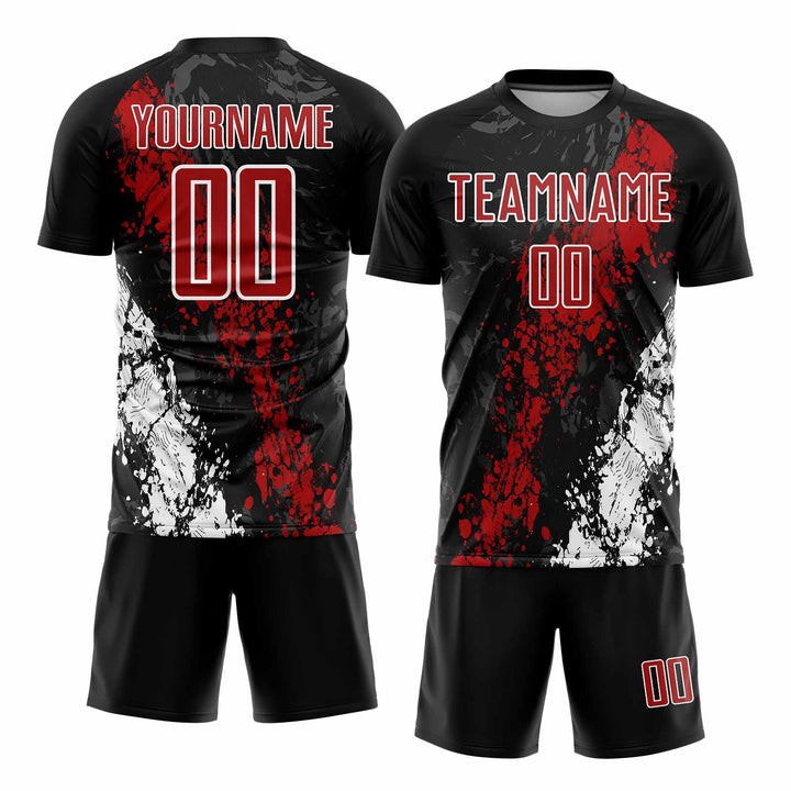 Custom Black Red-White Classic Uniform Training Sets Soccer Jersey For Adults/Kids