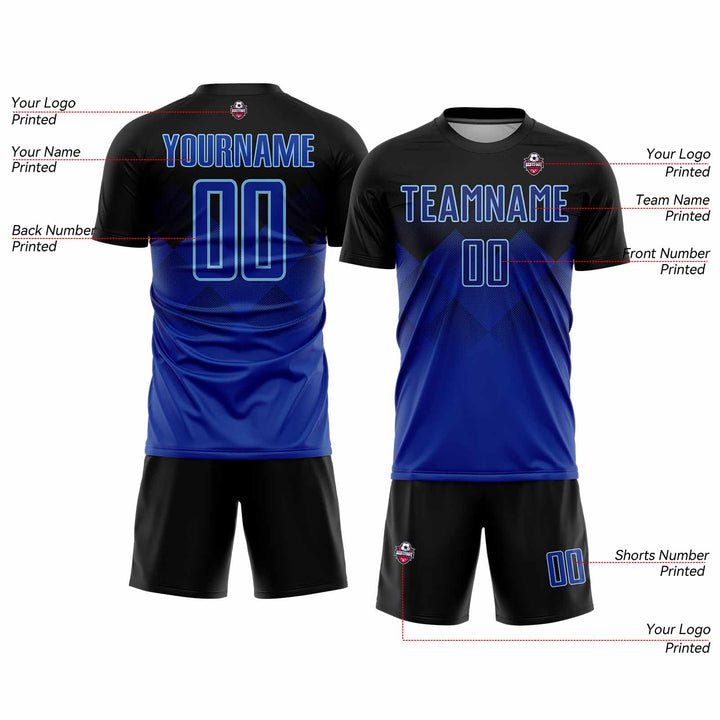 Custom Black Royal-Light Blue Classic Uniform Training Sets Soccer Jersey For Adults/Kids