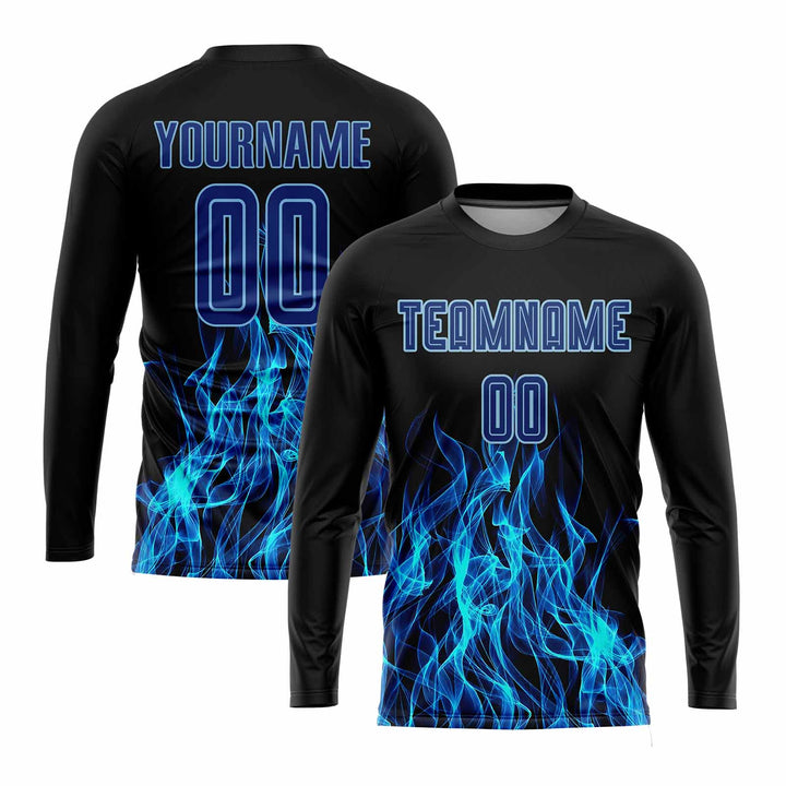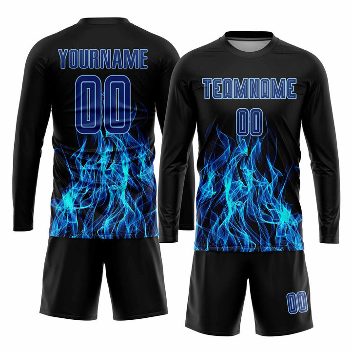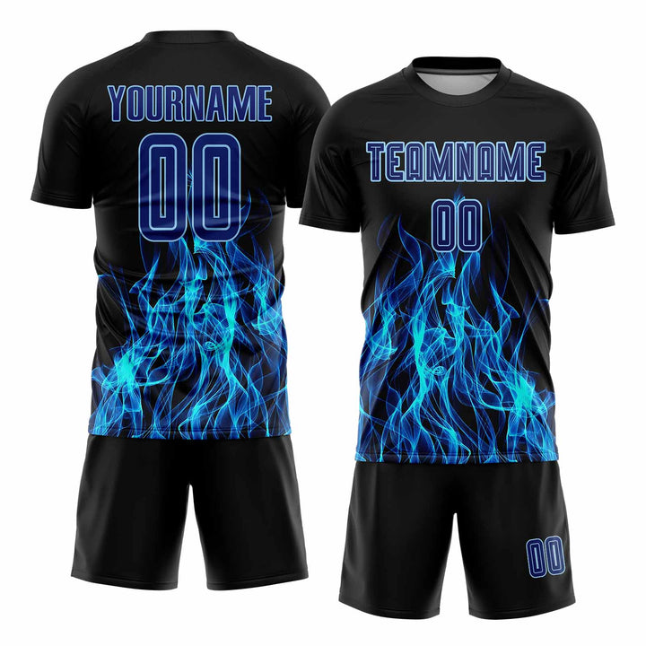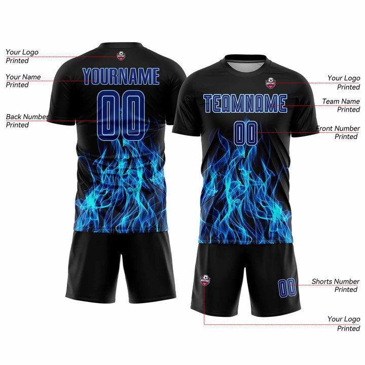 Custom Black Royal-Light Blue Flame Classic Uniform Training Sets Soccer Jersey For Adults/Kids