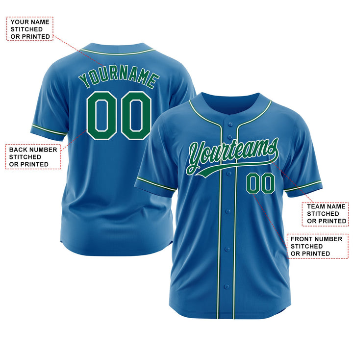 Custom Blue Kelly Green-White Classic Style Authentic Sports Baseball Jersey