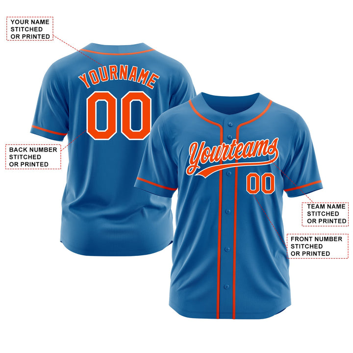 Custom Blue Orange-White Classic Style Authentic Sports Baseball Jersey