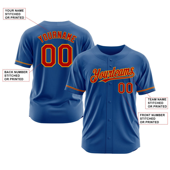 Custom Blue Red-Gold Classic Style Authentic Sports Baseball Jersey
