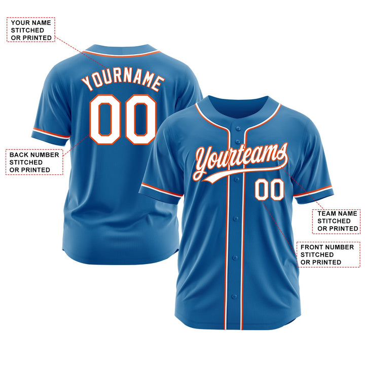 Custom Blue White-Orange Classic Style Authentic Sports Baseball Jersey