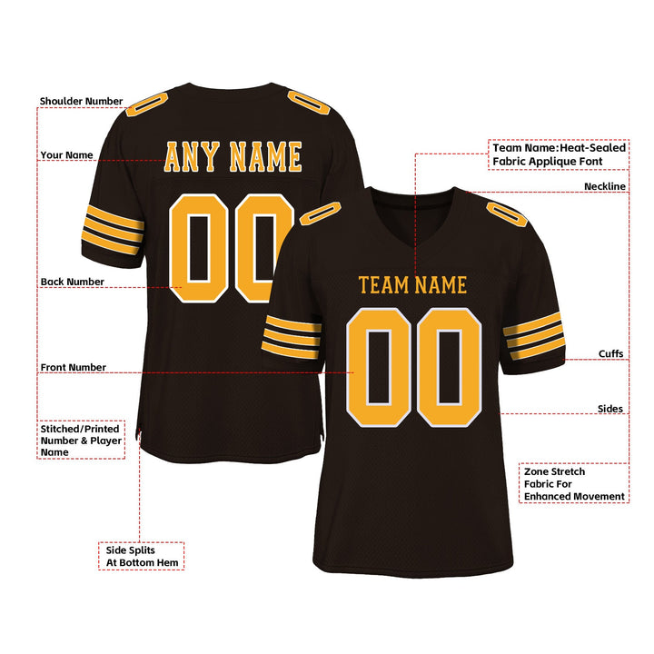 Custom Brown Gold-White Mesh Classic Style Authentic Sports Football Jersey