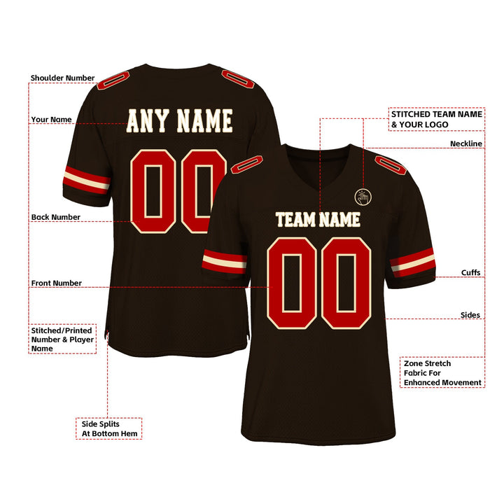 Custom Brown Red-Cream Mesh Classic Style Authentic Sports Football Jersey