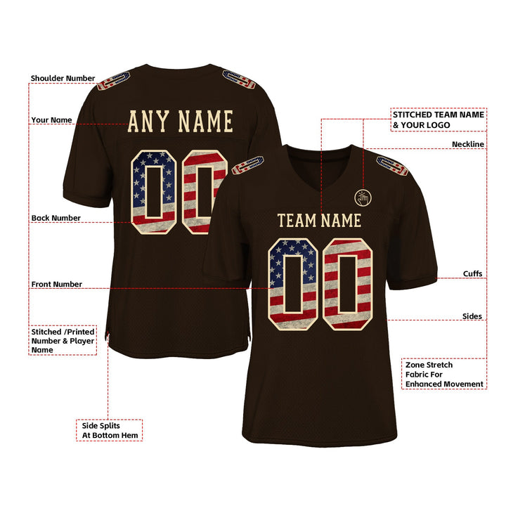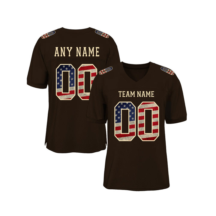 Custom Brown Vintage USA Flag-City Cream Mesh Classic Style Authentic Sports Football Jersey