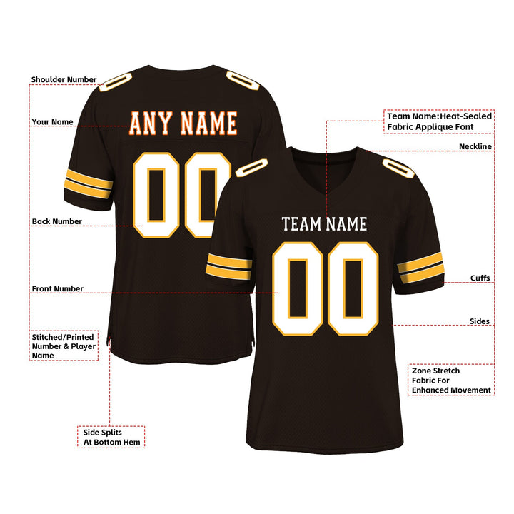 Custom Brown White-Gold Mesh Classic Style Authentic Sports Football Jersey