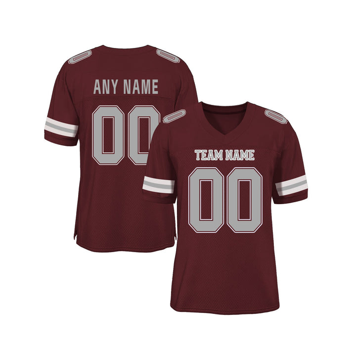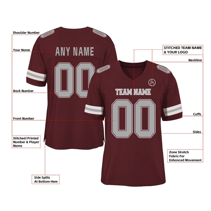 Custom Burgundy Gray-White Mesh Classic Style Authentic Sports Football Jersey