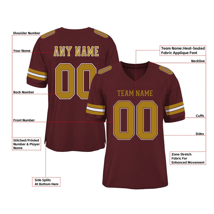 Custom Burgundy Old Gold-White Mesh Classic Style Authentic Sports Football Jersey