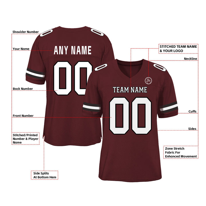 Custom Burgundy White-Black Mesh Classic Style Authentic Sports Football Jersey