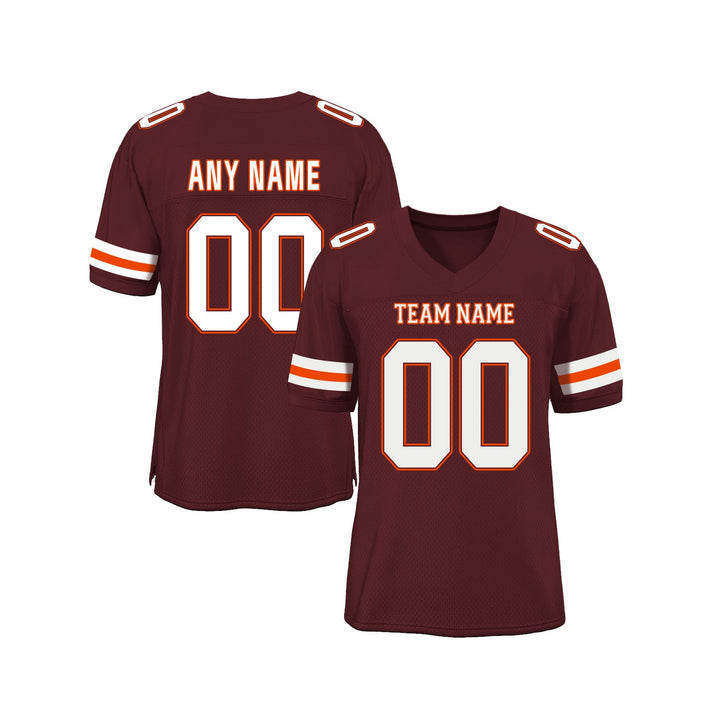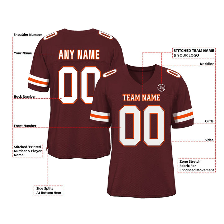 Custom Burgundy White-Orange Mesh Classic Style Authentic Sports Football Jersey
