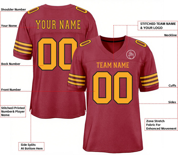 Custom Cardinal Gold-Black Mesh Classic Style Authentic Sports Football Jersey