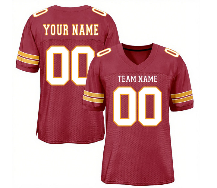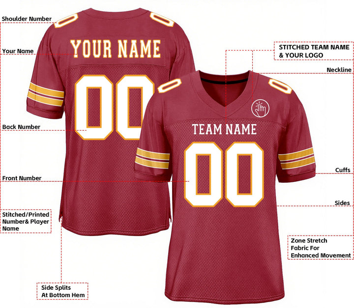 Custom Cardinal White-Gold Mesh Classic Style Authentic Sports Football Jersey