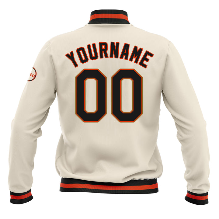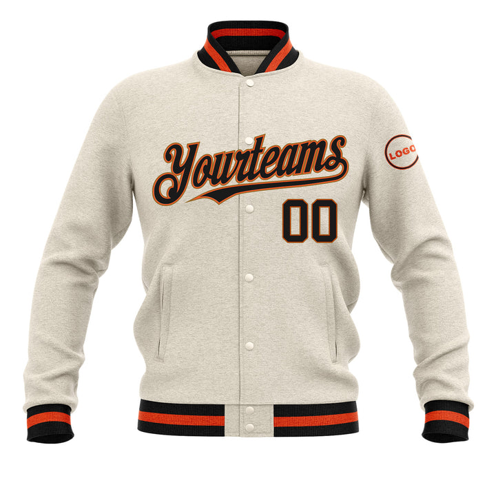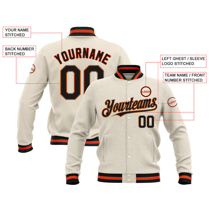 Custom Cream Black Orange-Old Gold Classic Style Full-Snap Bomber Varsity Letterman Embroidered Jacket