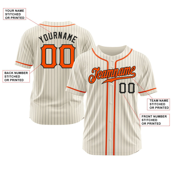 Custom Cream Black Pinstripe Orange-Black Classic Style Authentic Sports Baseball Jersey