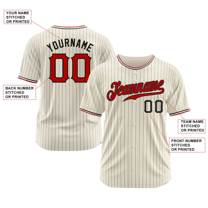 Custom Cream Black Pinstripe Red Black-White Classic Style Authentic Sports Baseball Jersey