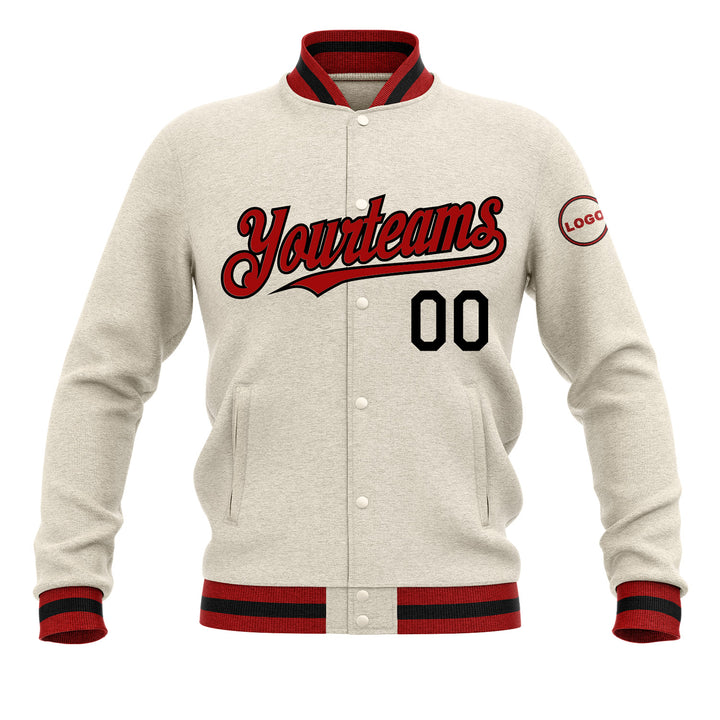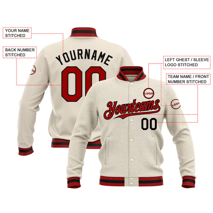 Custom Cream Cream-Maroon Classic Style Full-Snap Bomber Varsity Letterman Embroidered Jacket