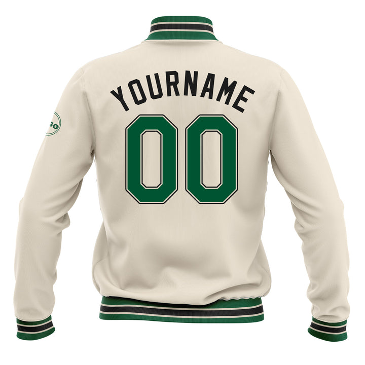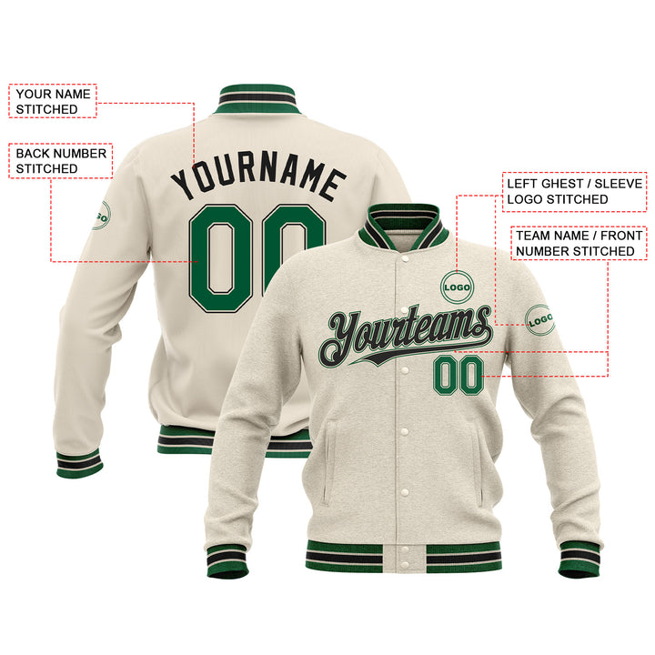 Custom Cream Red-Navy Classic Style Full-Snap Bomber Varsity Letterman Embroidered Jacket