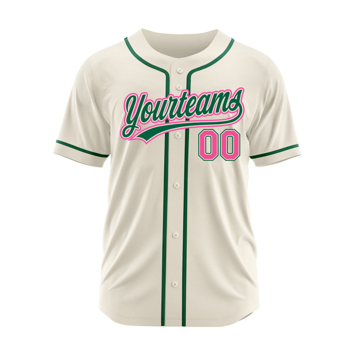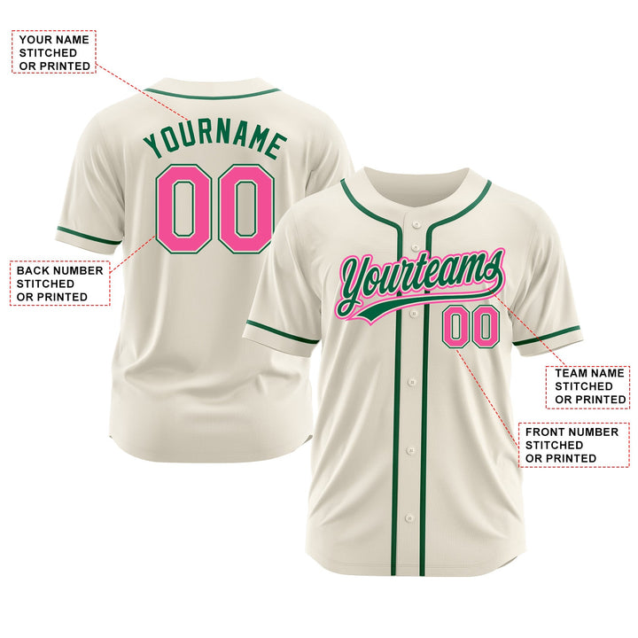 Custom Cream Pink-Kelly Green Classic Style Authentic Sports Baseball Jersey