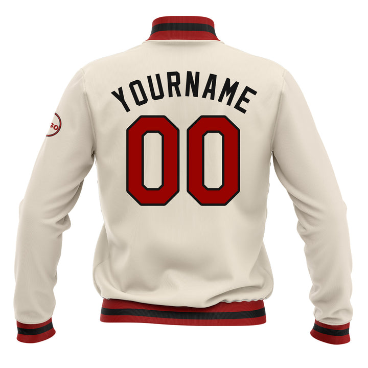 Custom Cream Red-Black Classic Style Full-Snap Bomber Varsity Letterman Embroidered Jacket