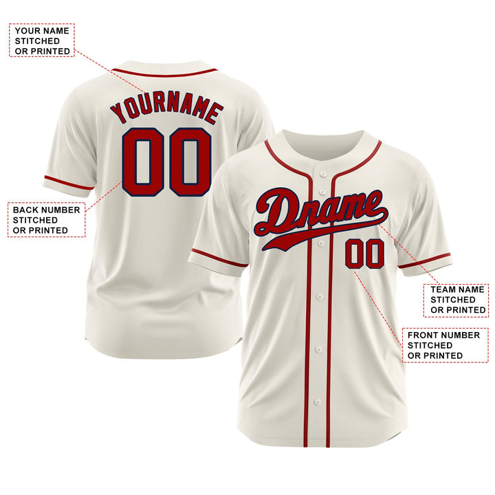 Custom Cream Red-Navy Classic Style Authentic Sports Baseball Jersey