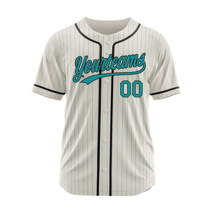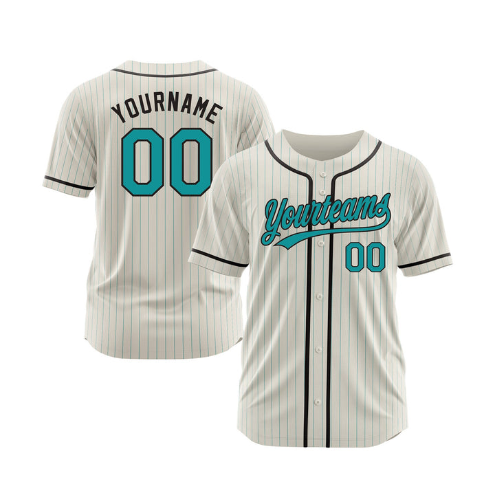 Custom Cream Teal Pinstripe Black Classic Style Authentic Sports Baseball Jersey