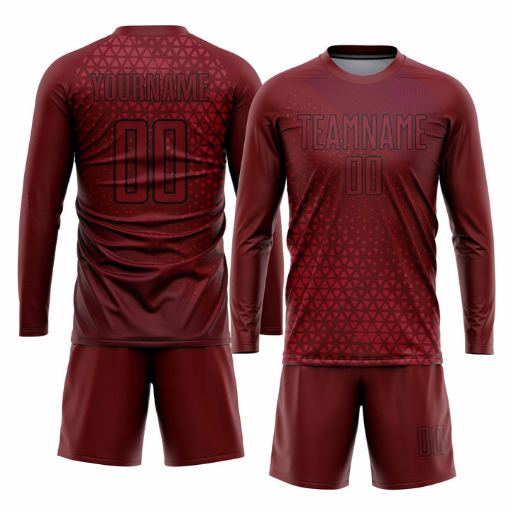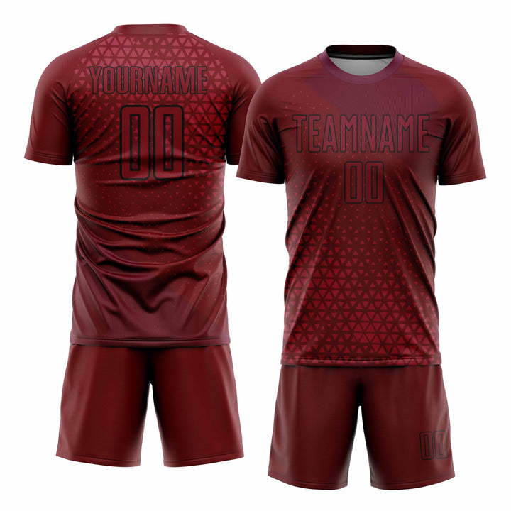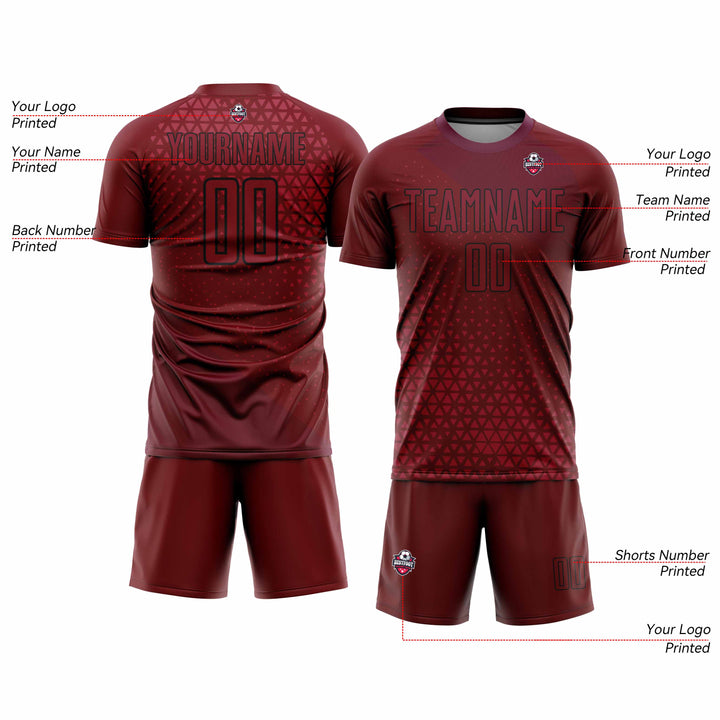 Custom Crimson Black Geometric Shapes Classic Uniform Training Sets Soccer Jersey For Adults/Kids