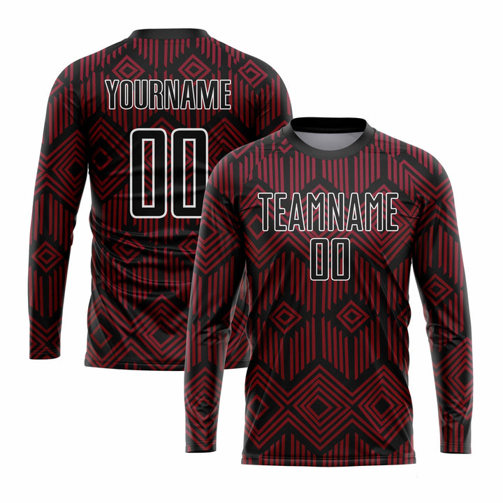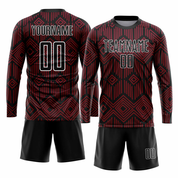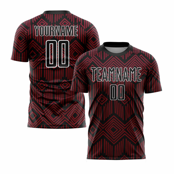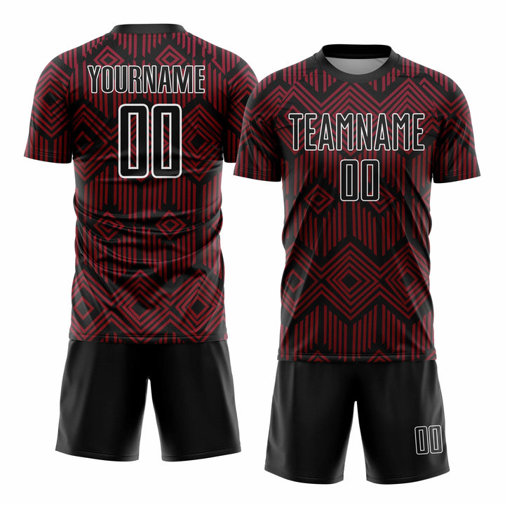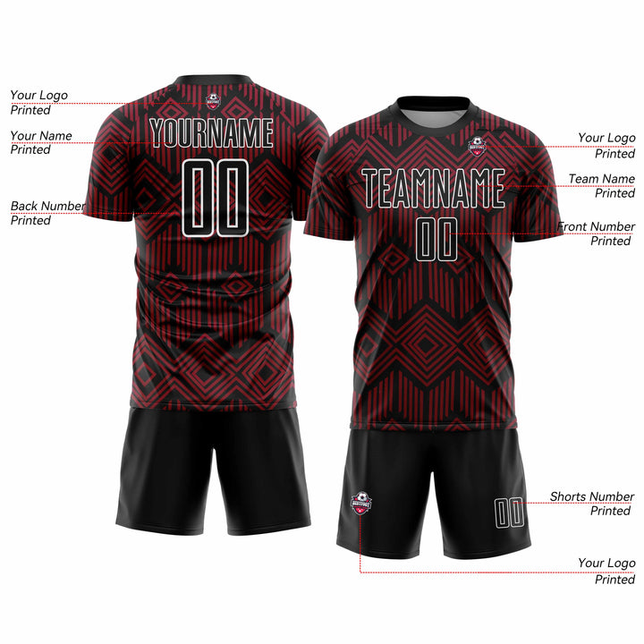Custom Crimson Black-White Abstract Geometric Shapes Classic Uniform Training Sets Soccer Jersey For Adults/Kids