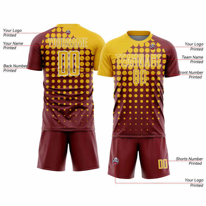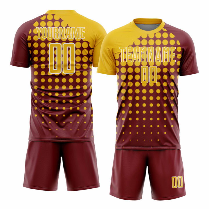 Custom Crimson Gold-White Modern Polka Dot Classic Uniform Training Sets Soccer Jersey For Adults/Kids