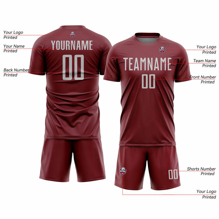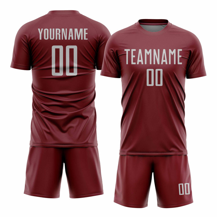 Custom Crimson Gray Gradient Line Classic Uniform Training Sets Soccer Jersey For Adults/Kids