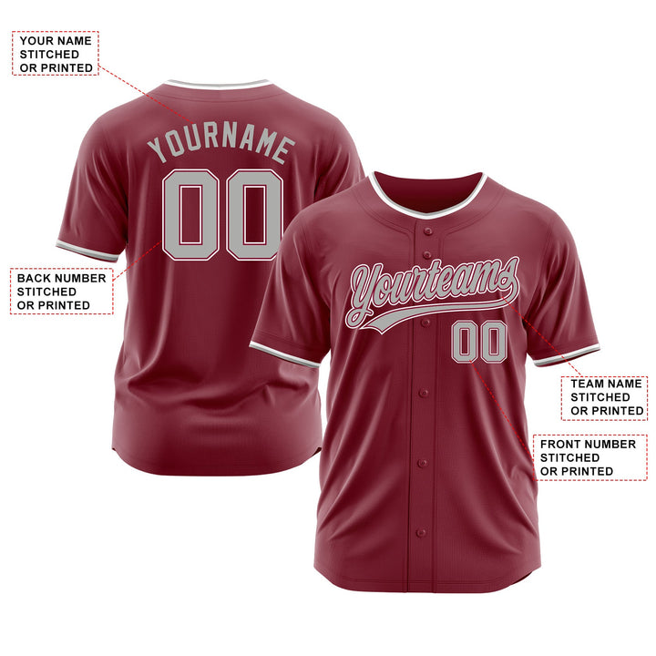 Custom Crimson Gray-White Classic Style Authentic Sports Baseball Jersey
