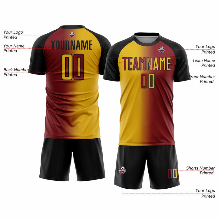 Custom Crimson Yellow-Black Classic Uniform Training Sets Soccer Jersey For Adults/Kids