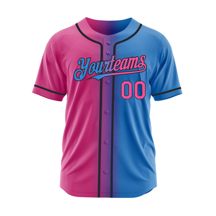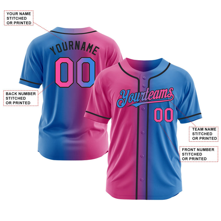 Custom Electric Blue Pink-Black Gradient Fashion Classic Style Authentic Sports Baseball Jersey