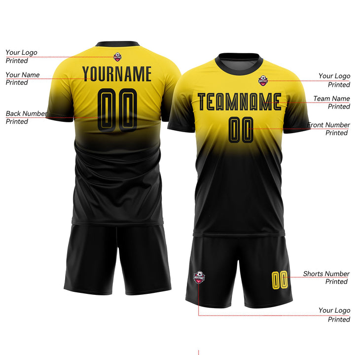 Custom Gold Black Fade Fashion Classic Uniform Training Sets Soccer Jersey For Adults/Kids