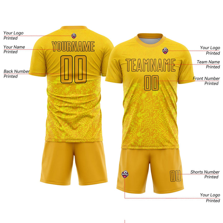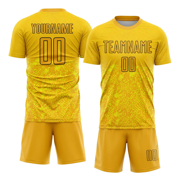 Custom Gold Black Geometric Shapes Classic Uniform Training Sets Soccer Jersey For Adults/Kids