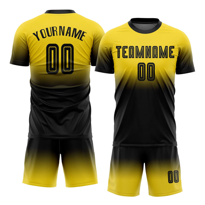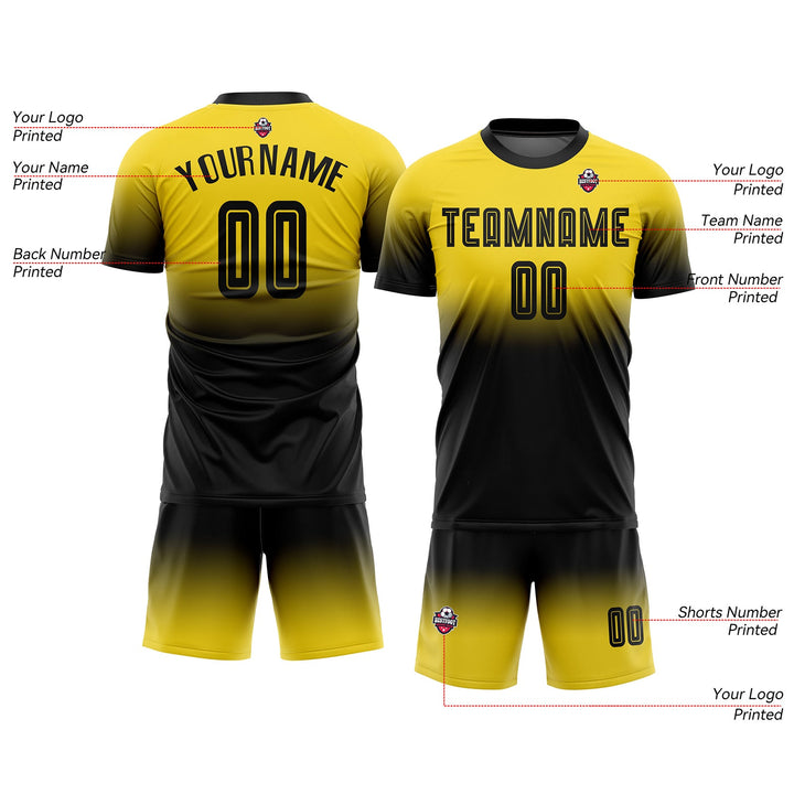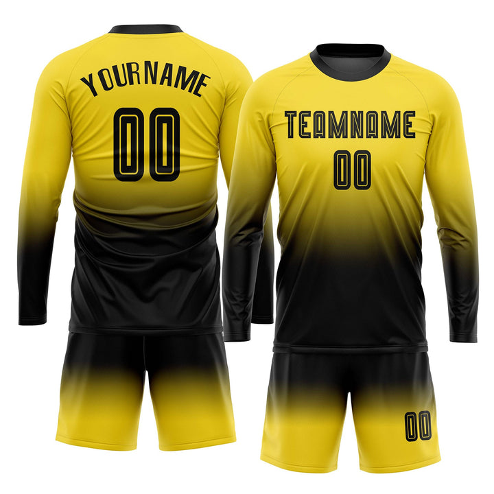 Custom Gold Black Long Sleeve Fade Fashion Classic Uniform Training Sets Soccer Jersey For Adults/Kids